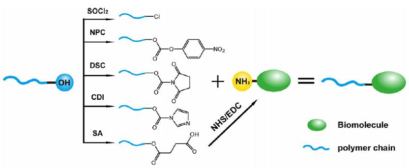 生物活性表面是指固定了具有特定生物功能的活性分子的材料表面。根据需要和固定生物分子功能性的不同,生物活性表面可以在诸多生物医用领域具有潜在的应用价值。目前构建生物活性表面的主要方法是首先选择具有生物惰性和高亲水性的高分子作为间隔臂来修饰材料表面,而后固定合适的生物活性分子。其中亲水性高分子一方面可以排斥非特异性的相互作用,另一方面有助于保持固定生物分子的活性。本文根据间隔臂类型的不同,综述了近年来有关生物活性表面的制备方法及其在相关领域的应用。并对该领域的发展方向作出了展望。