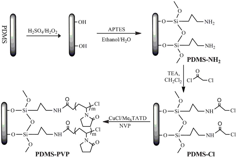 Poly(N-vinylpyrrolidone)-grafted poly(dimethylsiloxane) surfaces with tunable microtopography and anti-biofouling properties